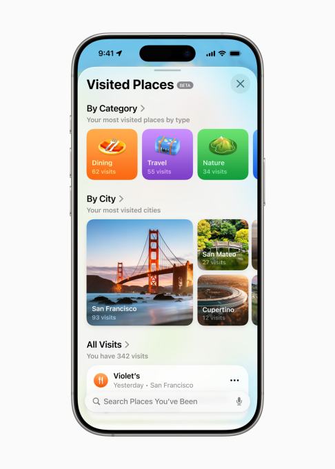 Apple Maps is also getting a new Visited Places feature that will help you remember the places you’ve been. You can choose to have your iPhone detect when you’re at a restaurant or shop, and view all of your Visited Places in Maps. Apple notes that Visited Places are protected with end-to-end encryption and that it cannot access them.
