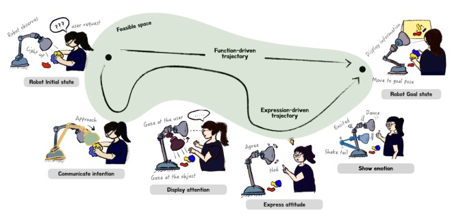 “For robots to interact more naturally with humans,” the paper notes, “robot movement design should likewise integrate expressive qualities, such as intention, attention, and emotions, alongside traditional functional considerations like task fulfillment and time efficiency.”