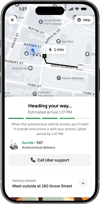 Uber initially announced its partnership with Avride to bring both the company’s delivery bots and its autonomous vehicles to the Uber platform in October 2024. Since then the two have launched robotic deliveries in Austin and Dallas.