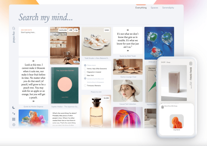 MyMind then groups related content into “Spaces,” which gets rid of the need to manually sort your bookmarks. You can search for what you’re looking for using keywords, brand, date, or even color.