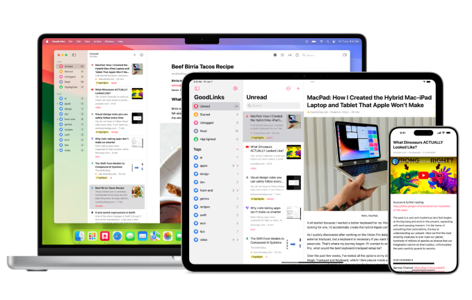 GoodLinks is available on iOS, iPadOS, and macOS devices. The app also offers browser extensions to save links directly from Safari, Chrome, Edge, or Firefox.