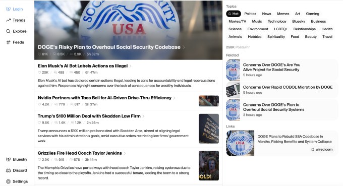 Founded by former Stability AI engineers John Sabath and Conner Ruhl, Dazzle offers a website that makes sense of the firehose of data from Bluesky and organizes it into categories, highlighting the trends across various topics. While much of the early discussion on Bluesky today leans political, Dazzle’s site can help you find other topics and conversations taking place.