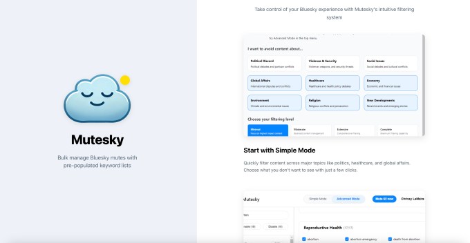 The service offered by Mutesky lets you bulk manage Bluesky mutes — meaning topics you don’t want to see as part of the Bluesky experience — in one convenient dashboard. Here, you can control whether or not you want to see things like political discourse, social issues, global affairs, religion, healthcare, and others when browsing the Bluesky social network. You can even more narrowly dig into niche topics within categories to specify which subtopics should be muted.