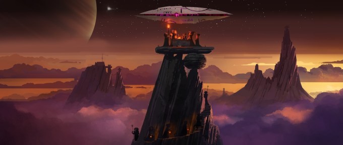 A few characters have been fully fleshed out as well, including Captain Skadi (featured in the image below), who, as a child, touched a macro-relic and inadvertently turned her entire world into glass, including her parents and siblings. There’s also Darius, a service worker who travels the galaxy and witnesses “a lot of weird shit,” as Goyer puts it.