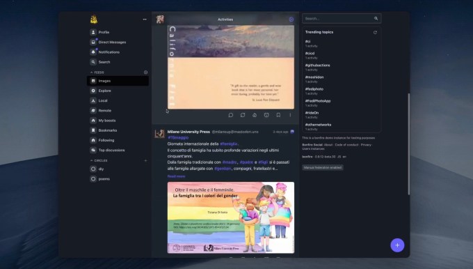 Bonfire Social, a new framework for building communities on the open social web, launched on Thursday during the FediForum online conference. While Bonfire Social is a federated app, meaning it’s powered by the same underlying protocol as Mastodon (ActivityPub), it’s designed to be more modular and more customizable. That means communities on Bonfire have more control over how the app functions, which features and defaults are in place, and what their own roadmap and priorities will include.