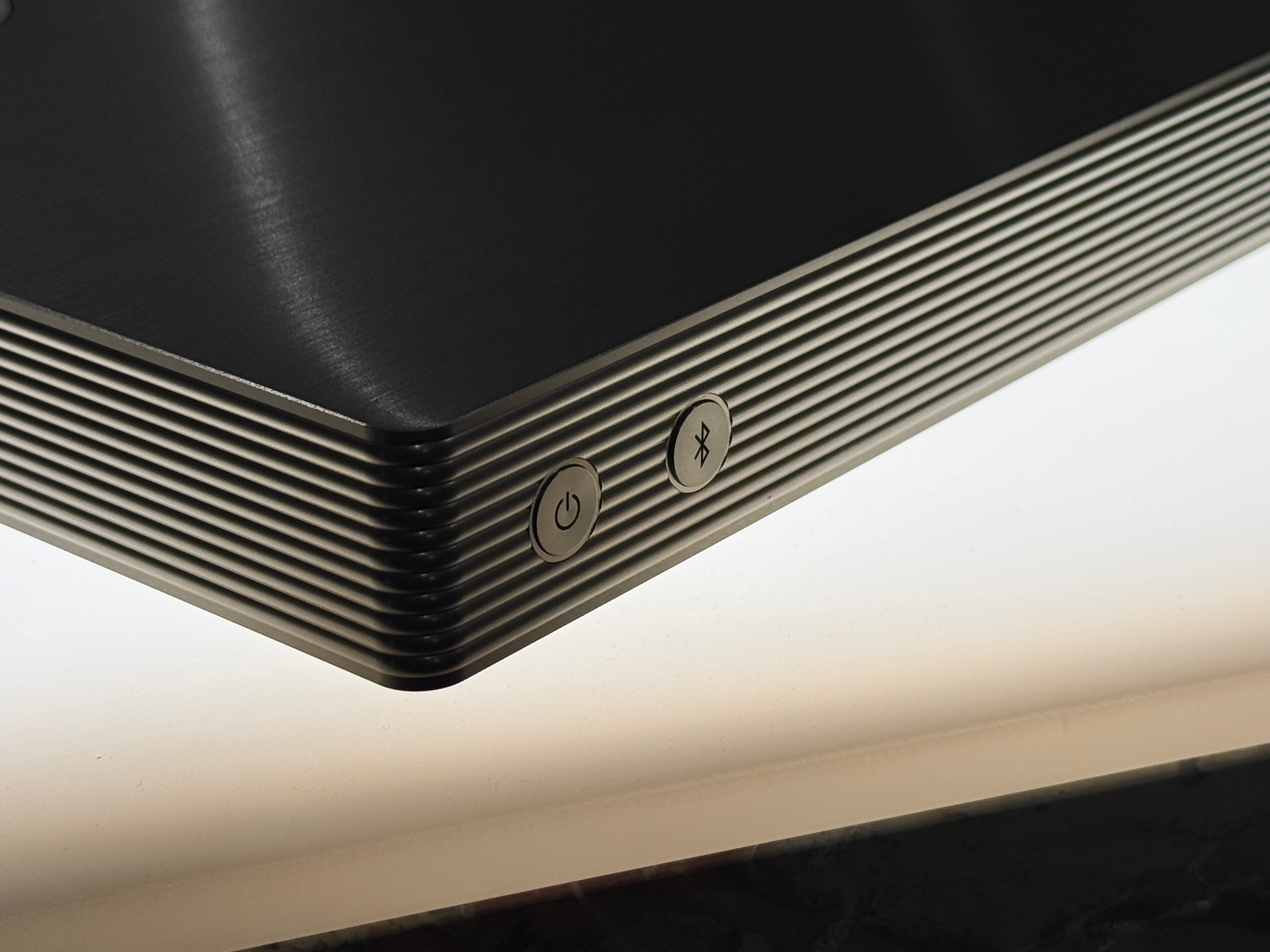 Coming back to the product, the Devialet Astra is relatively thin for an audio amplifier. It has a brushed aluminum casing with an art deco-inspired lined design around the edges, and features a small rounded screen on the top. You also get a wireless remote.