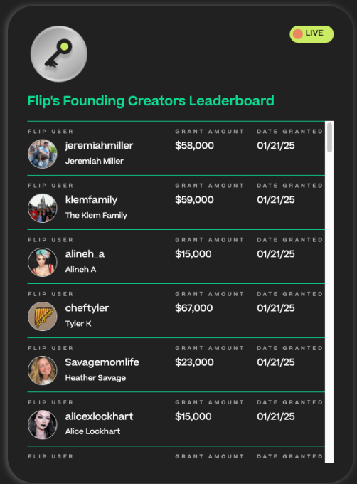 The creator fund quietly rolled out earlier this week and provides up to $100 million worth of equity to participating creators over the next five or so years. Grants range from $6,000 to $100,000, depending on a creator’s level of engagement. Notably, Flip aims to distribute up to $1 million per day for the first 30 days of the program.