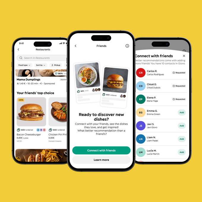 Glovo says the new social features will let users find and connect with friends who are also using the app. This is powered by matching a user’s phone contacts to existing Glovo users and sending permission requests to connect. It enables users who opt in to be able to share recommendations and discover restaurants their friends have liked.