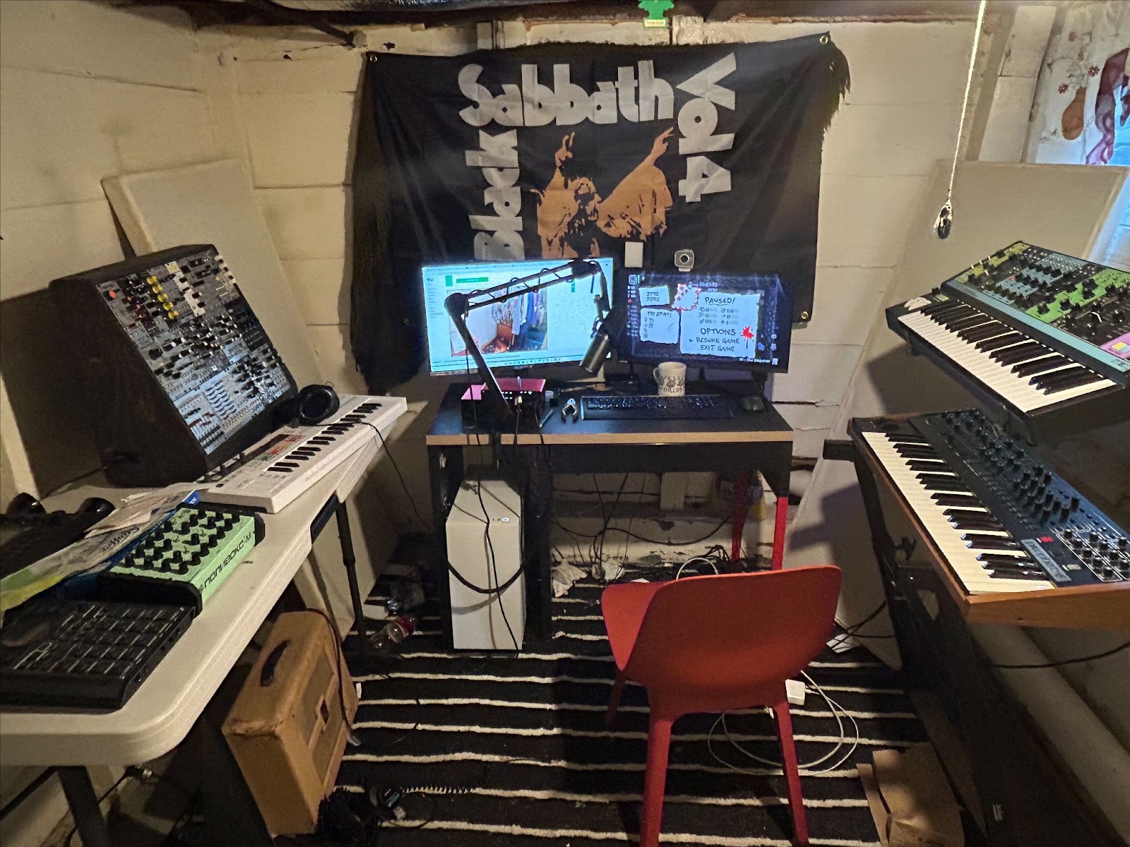 “That’s why I have this giant Black Sabbath Vol. 4 wall flag. Behind the flag is a wool blanket I’ve hung on some nails to keep the place sounding good, and I just wanted something I’d like looking at. Because that album is so good. “Changes”? “Snowblind”? Oh my god. To the left and right of my desk are sound baffles that minimize echo, and then all the other crud I’ve filled my office with helps to keep echo down as well.