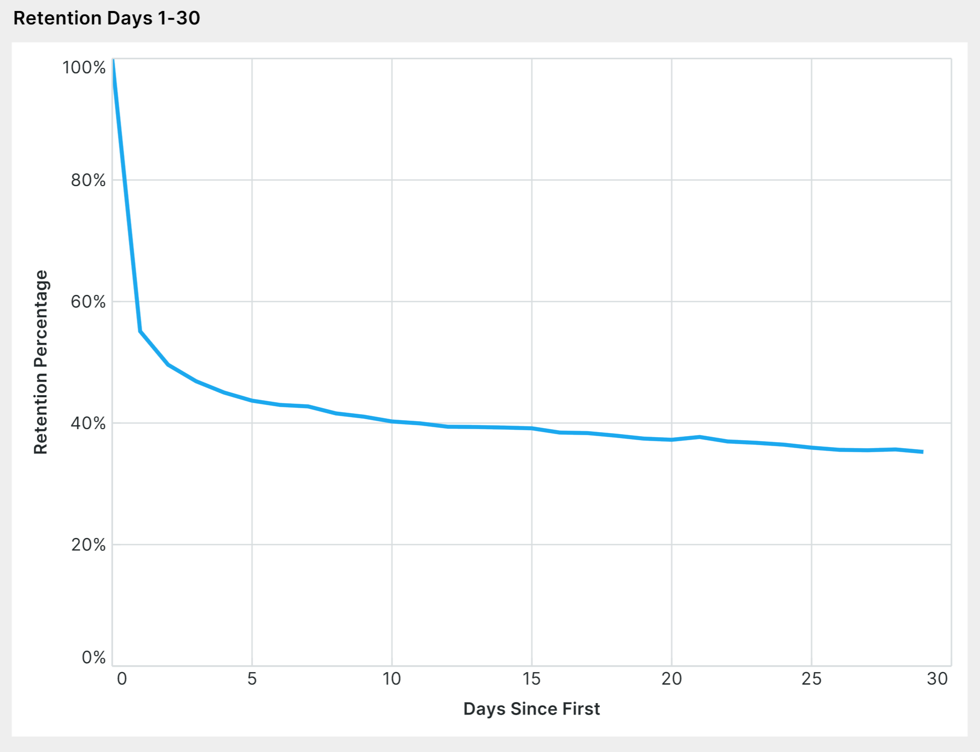 If you can prove that of everyone who started using your app, about 30% continued to use it at day 30, you’re showing that some people find usefulness and usability in your product after making it through the onboarding process.