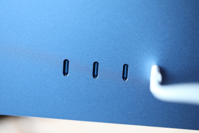 The iMac ships with a color-coordinated keyboard with Touch ID (but no number pad) and mouse. The coloring on the mouse is particularly subtle, as are the matching cables. They’re as subtle as a purple, pink, or yellow computer can be. Thanks in large part to EU regulators, these peripherals now ship with USB-C standard. As annoying as it might be to upgrade those Lightning cables, users will ultimately appreciate the convenience of a universal — and just generally better — connector.