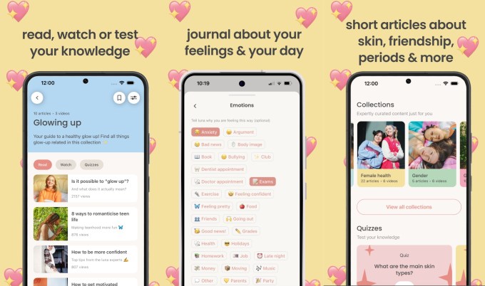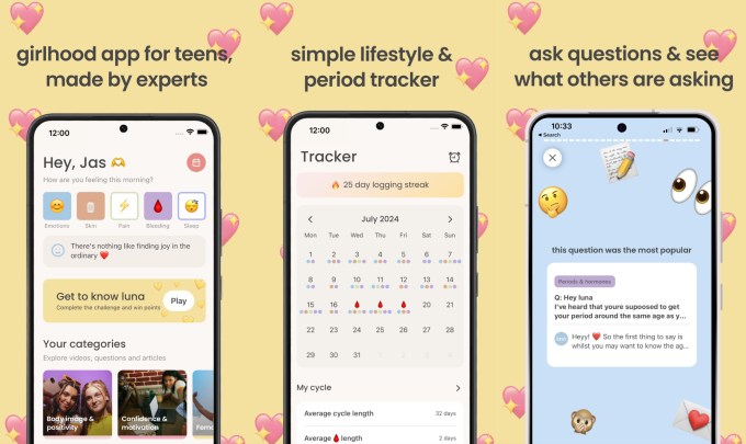 Meet Luna, a health and well-being app for teen girls that is designed to help them navigate teenhood. The app lets teens ask questions about their health and wellness and get responses from experts. It also lets them track their periods, moods, and skin. The London-based startup presented today at on the Startup Battlefield stage at TechCrunch Disrupt 2024 to detail its mission to educate and support teen girls.