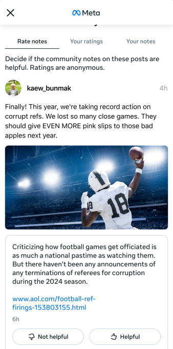 Meta hopes that Community Notes will address the public perception that it’s biased, as well as make fewer mistakes and serve as a more scalable fact-checking system that ultimately addresses more misinformation. However, Meta notes this system does not replace Community Standards — the company’s rules that dictate whether posts are considered hate speech, scams, or other banned content.