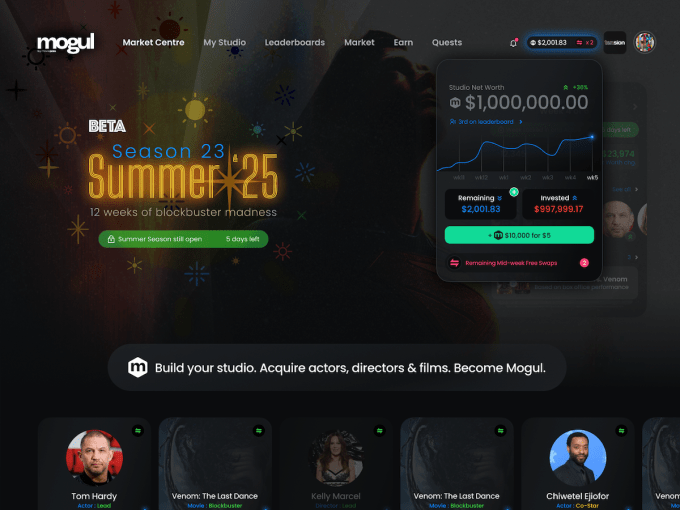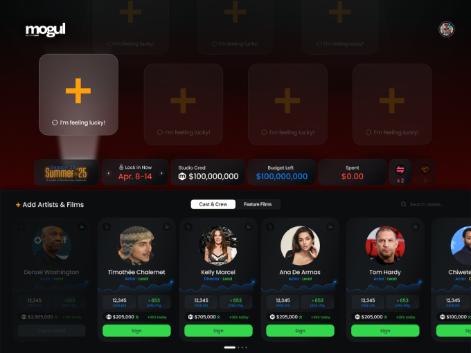 Mogul takes this idea by allowing users, who are likely passionate movie enthusiasts interested in this sort of thing, to act as studio heads in the film industry. Players are provided with a budget and “studio credits” (in-game currency) to spend on selecting actors for their leagues.