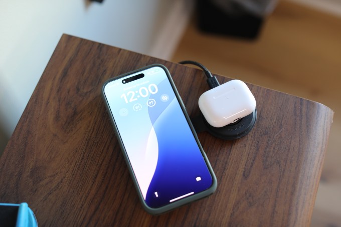 If you need an additional option, the charger’s exterior sides also magnetically snap together, allowing you to charge both the phone and watch on their sides. This may well be the best configuration of the bunch, as it pulls up the iPhone’s Standby mode, thus replacing the need for a bedside alarm: