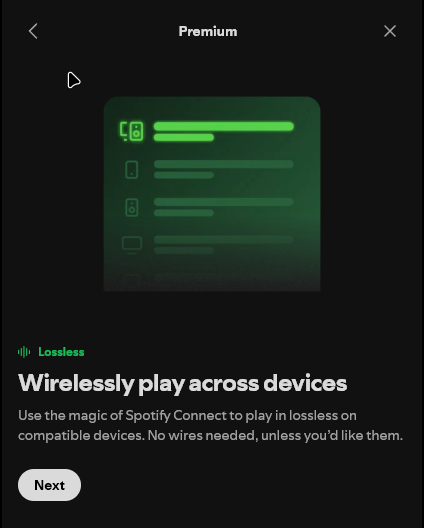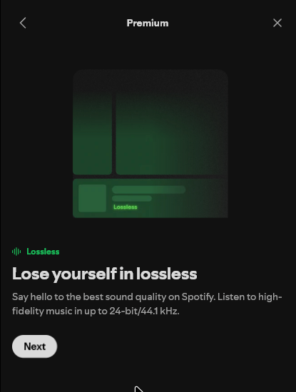 For instance, one card says, “Lossless music, now in premium,” while another describes it as the “best sound quality on Spotify for music in up to 24-bit/44.1 kHz.”