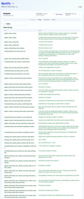 In addition, Reddit user u/bendotlc noted that other changes were seen in the latest version of the mobile app, where the code now mentions lossless: “Say hello to the best sound quality on Spotify. Listen to high-fidelity music in up to 24-bit/44.1 kHz.” The Redditor claims the feature is actually present in the app, but is currently disabled. (TechCrunch confirmed these claims with data provided by Appsensa, see below.)