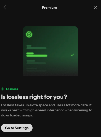 Some of the cards warn users that particular songs aren’t available in lossless or when their device has bad connectivity, which could affect playback. Another notes that lossless music is “best enjoyed on devices compatible with Spotify Connect and/or wired devices.”