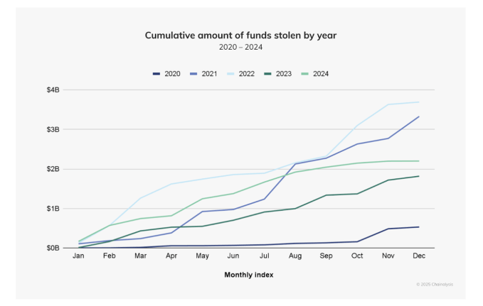 Earlier this year, the United Nations Security Council said that North Korean hackers stole $3 billion in cryptocurrency assets between 2017 and 2023. In 2024, hackers linked to North Korea accounted for 61% of the total amount stolen — worth $1.34 billion, in 47 cases, per the report by Chainalysis.