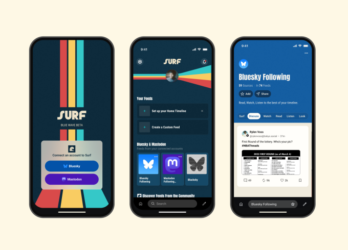 Surf, the new app from Flipboard for browsing the open social web, is expanding its support for Bluesky’s social network. On Monday, the company announced a new version of its beta software (dubbed “Blue Wave”) which allows users to log into the app using their Bluesky credentials and then see all their Bluesky feeds in Surf, including their following feed, discover feed, and any of the custom feeds they’ve pinned in the Bluesky app.