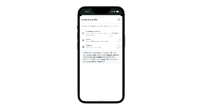 The setting is available under a new “Curate your profile” section, where users can control their content’s visibility. An option to toggle on or off NSFW content and activity is also available, as is a Followers toggle to show or hide follower count.