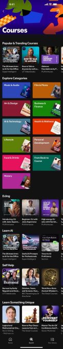 Spotify is expanding its streaming service to now include educational courses in addition to music, podcasts, and audiobooks. The company on Tuesday referenced one of its newer features called courses, which allow users to learn about topics in areas like business, tech, lifestyle, music, and more.