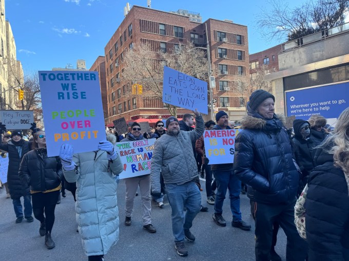 Protesters who spoke to TechCrunch from Washington Square Park raised concerns about DOGE’s access to sensitive data of millions of Americans and the group’s dismantling of federal agencies. They said that they view Musk’s work with DOGE as a veiled attempt at a financial power grab, and expressed frustration that Musk, an unelected official, has gained unprecedented levels of power over the federal government.