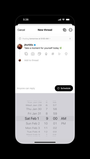 The scheduler, meanwhile, can be accessed from the three-dot menu on the composer, Threads says in a post. Here, you’ll tap “Schedule,” then choose a date and time, then “Schedule” again to confirm. The scheduled posts will appear in your drafts folder, where you can edit or delete them before they go live.