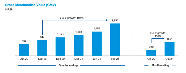 Our total merchant base has grown from 11.2 million as of March 31, 2019 to 21.1 million as of March 31, 2021, and our GMV has increased from ₹2,292 billion in FY 2019 to ₹4,033 billion in FY 2021.