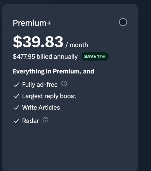 It’s worth noting that the pricing is not consistent on X: When this reporter tried to sign up for the Premium+ plan, X showed that it would cost $39.83 per month ($477.95 annually), though the final check-out page said it would cost $395 for a year.