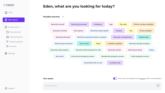The problem’s apparently even worse for independent advisors, who often don’t have a big team doing outreach or finding qualified leads. Ovadia saw an opportunity there, and with the help of her two co-founders, Victoria Toli and Theo Janson, started Finny with a simple goal: To build an AI agent that could match advisors with prospects who meet their search criteria.